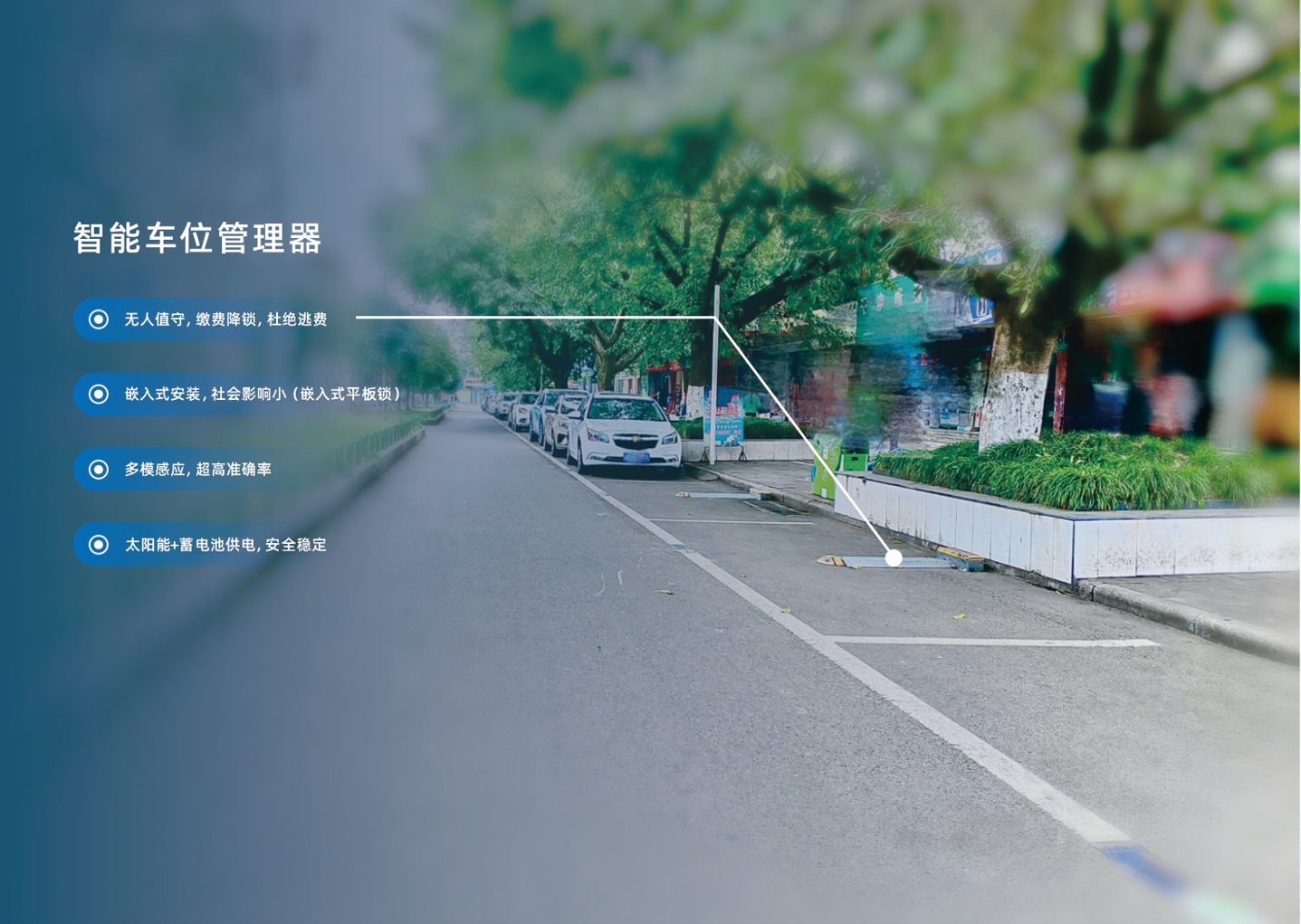 “智能车位管理器”是针对道路停车泊位和闲散的、开放式停车位管理的难题推出的一款智能车位管理设备,其最大的优势是可以较好解决道路停车泊位的收费管理问题,提升收费率,保障运营管理工作的正常召开。